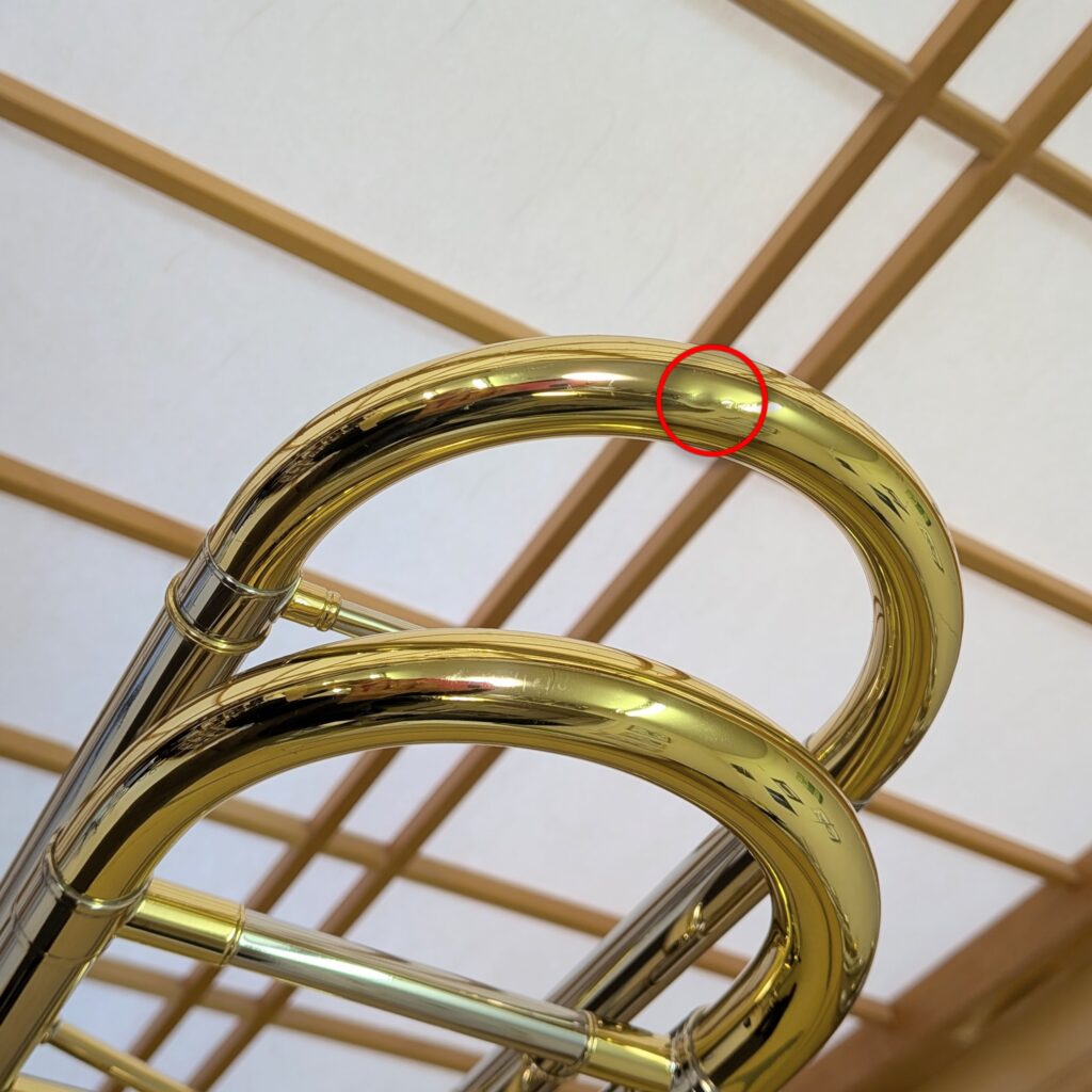 - スライドクルーク部、抜差管U字部、ベル部などに小さな凹み数か所ございます。